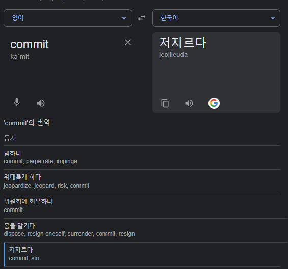 무언가 저질렀을때의 상황을 보면 저지르다 라는건