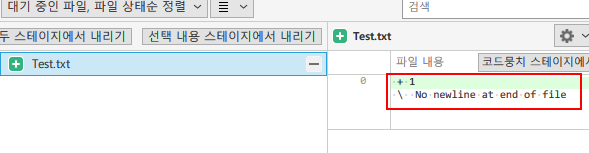 스테이지에 올려주게 되면 우측에 어떠한 내용이 추가, 삭제 같은 수정이 이루어졌는지 자세히 확인할수 있다.