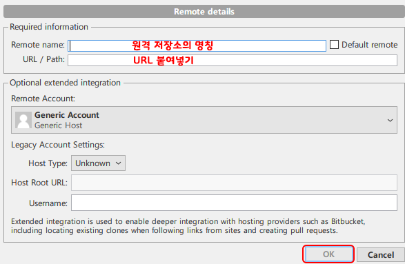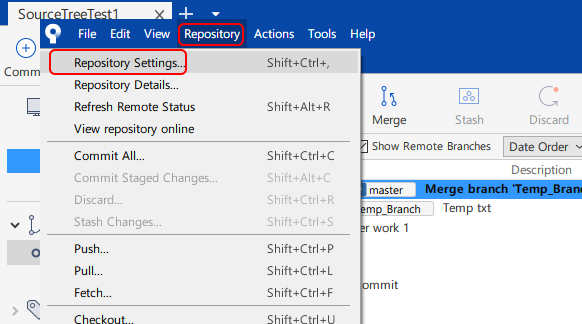 소스트리의 상단 탭에서 Repository - Repository Settings