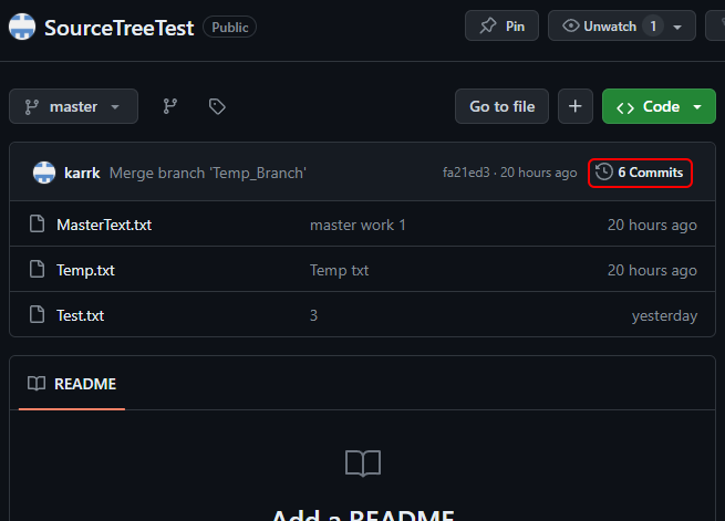 원격의 master 브랜치도 로컬의 최신상태로 백업된것을 볼수있다.