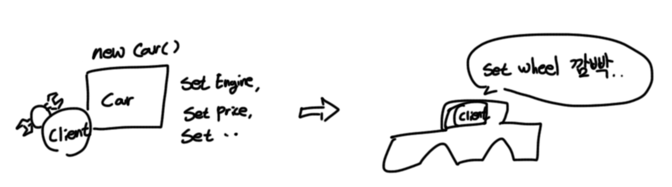 클라이언트의 오더를 받고 빌더내부에서 각 설정을 해준 뒤에 최종 객체를 반환받는 방식이다.